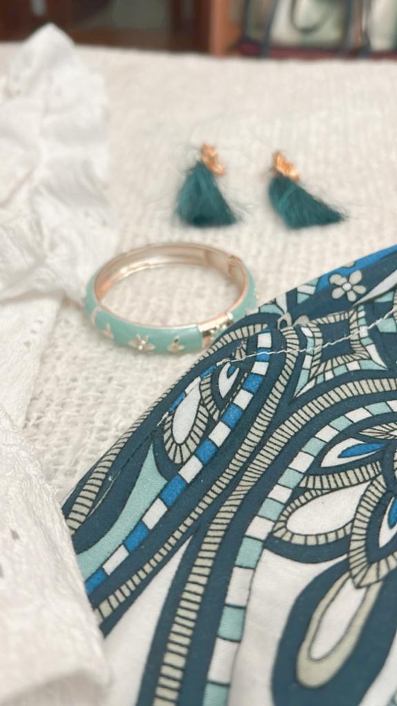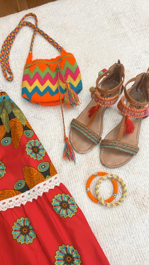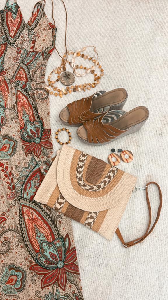 Los accesorios, los bolsos y las joyas son de materiales naturales como la rafia, flecos, piedras