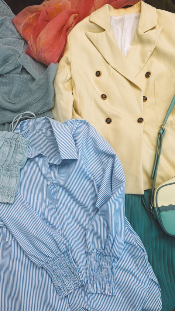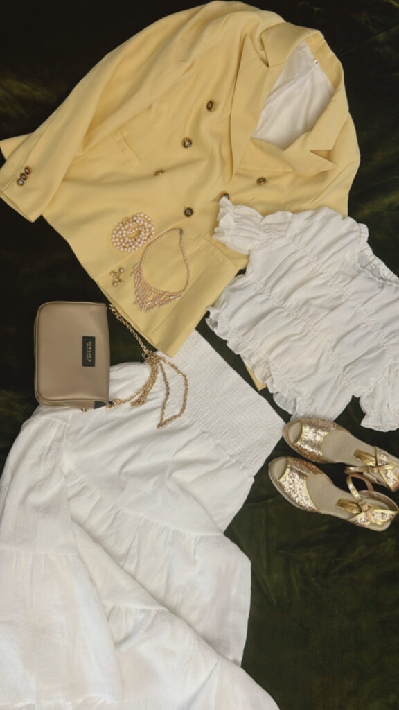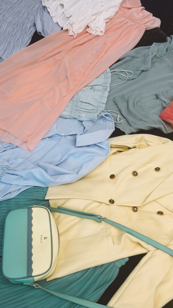 La combinación de estos colores con volantes y formas delicadas crea los looks calmados y alegres , con accesorios y complementos enriquecemos el look.